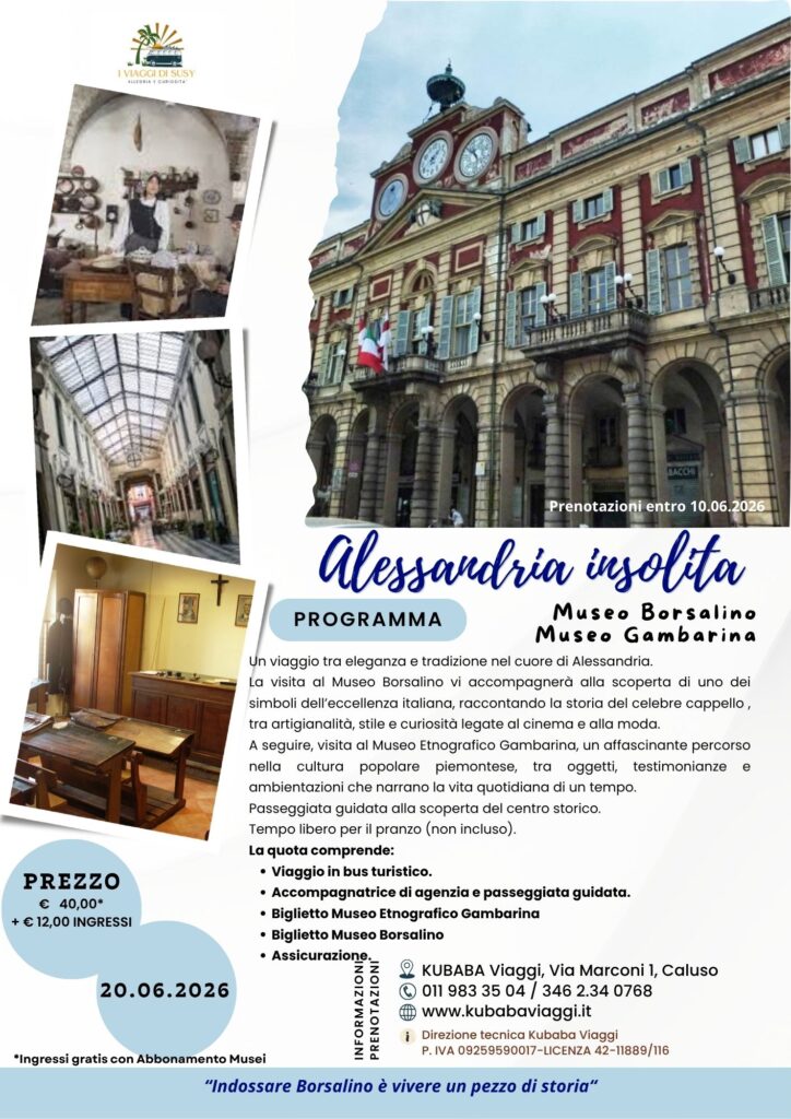La visita al Museo Borsalino vi accompagnerà alla scoperta di uno dei simboli dell’eccellenza italiana, raccontando la storia del celebre cappello , tra artigianalità , stile e curiosità legate al cinema e alla moda.